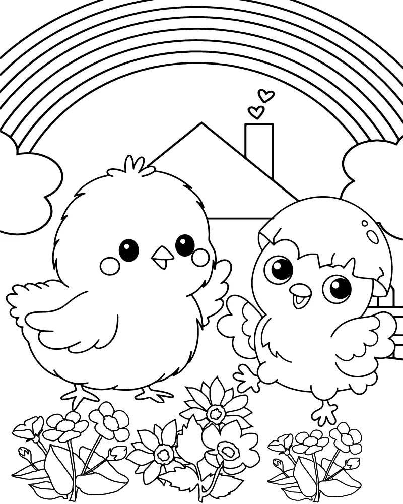 : Druckbar herunterladen Verspielte Baby-Küken Malvorlage