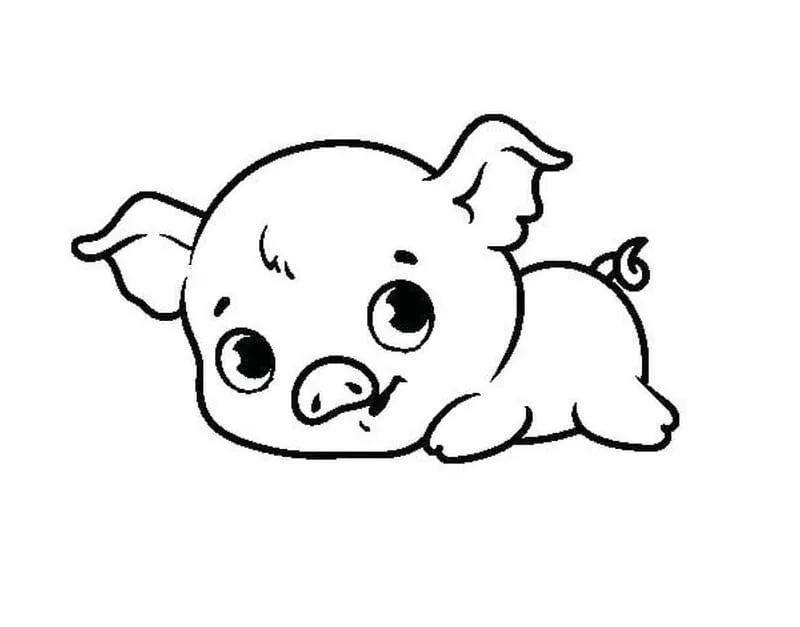 : Druckbar herunterladen Babyschwein auf dem Boden Malvorlage