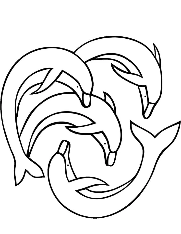 : Druckbar herunterladen Vier Delfine Malvorlage