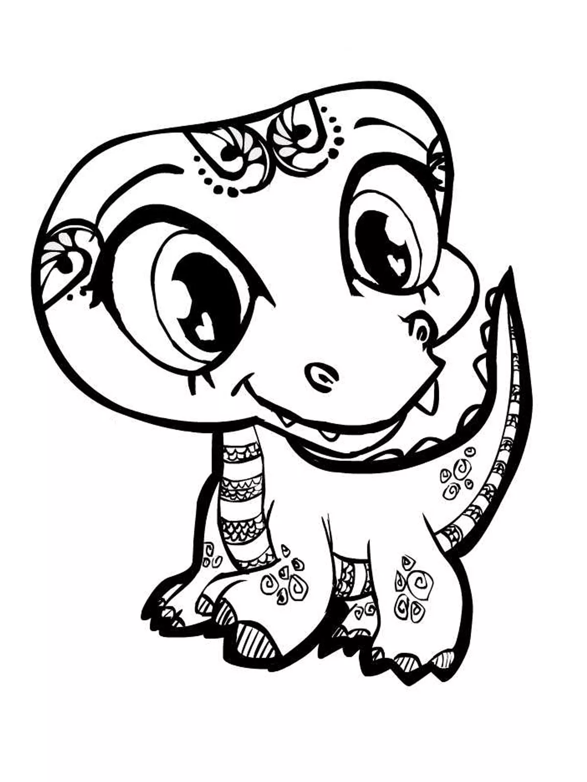: Druckbar herunterladen Niedlicher Dinosaurier mit großen Augen Malvorlage