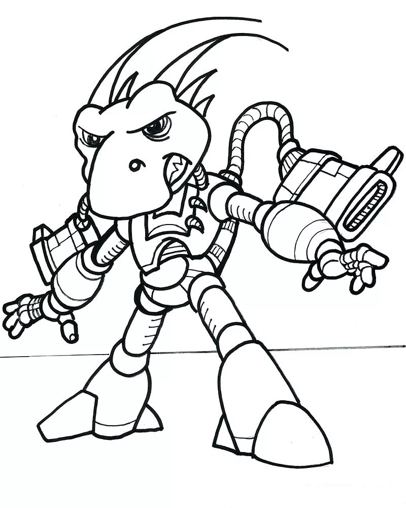 : Druckbar herunterladen Roboter-Dinosaurier Malvorlage