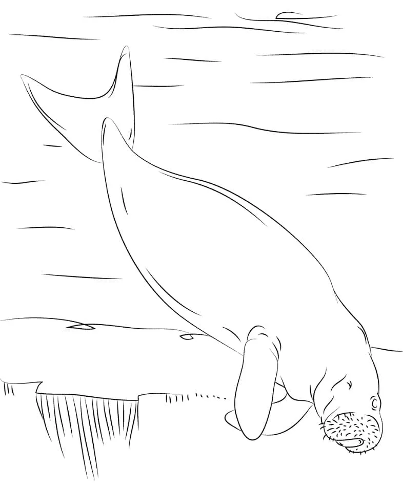 : Druckbar herunterladen Dugong Schwimmen Malvorlage
