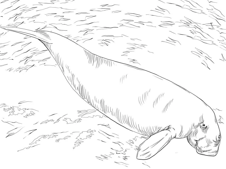 : Druckbar herunterladen Dugong unter Wasser Malvorlage