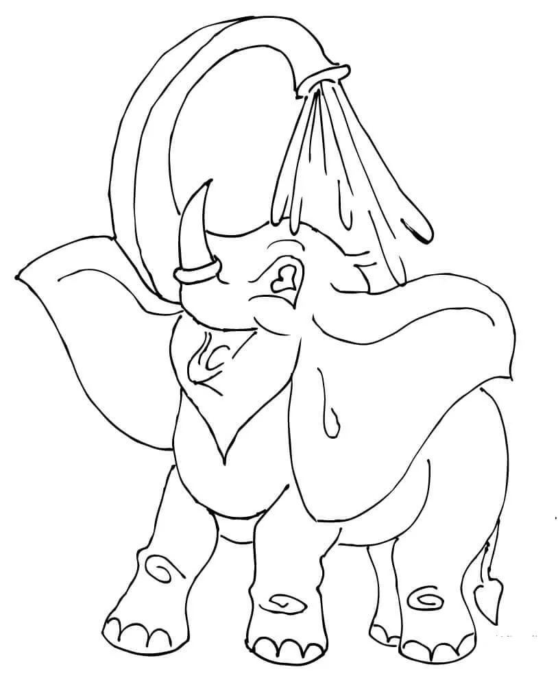 : Druckbar herunterladen Elefanten-Duschen Malvorlage