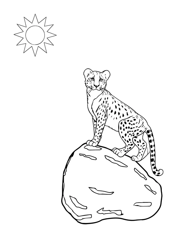 : Druckbar herunterladen Gepard auf dem Stein Malvorlage