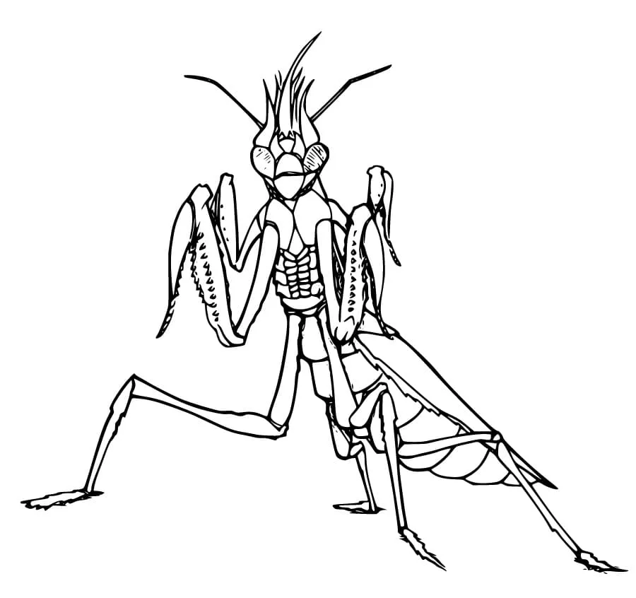 : Druckbar herunterladen Gruselige Gottesanbeterin Malvorlage