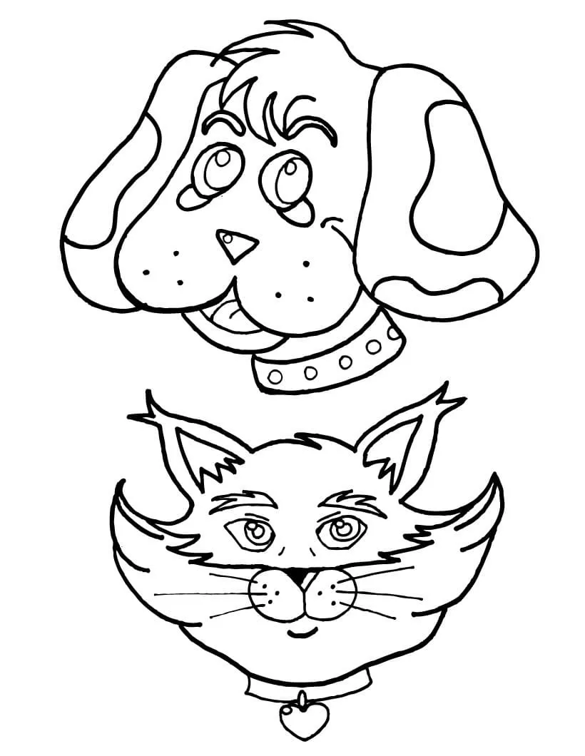 : Druckbar herunterladen Glückliche Katze und Hund Malvorlage