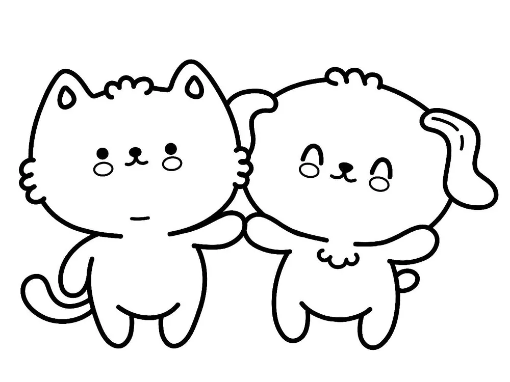 : Druckbar herunterladen Kawaii Hund und Katze Malvorlage