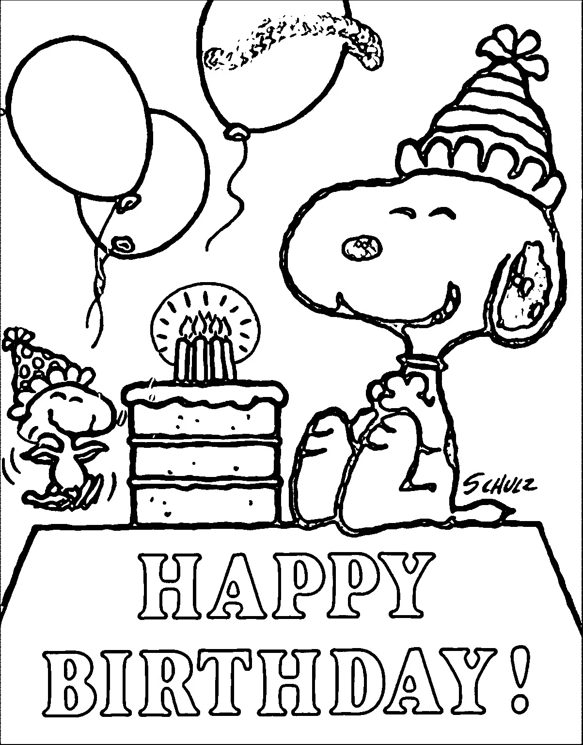 : Druckbar herunterladen Alles Gute zum Geburtstag Snoopy Malvorlage