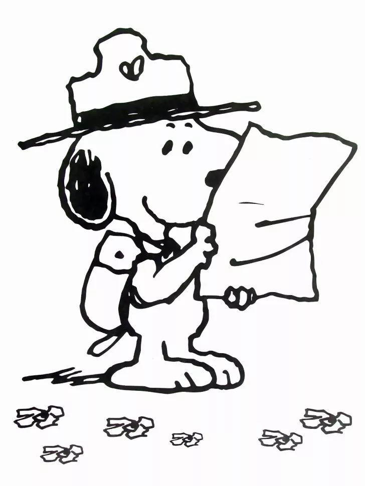 : Druckbar herunterladen Mit Snoopy auf Schatzsuche Malvorlage