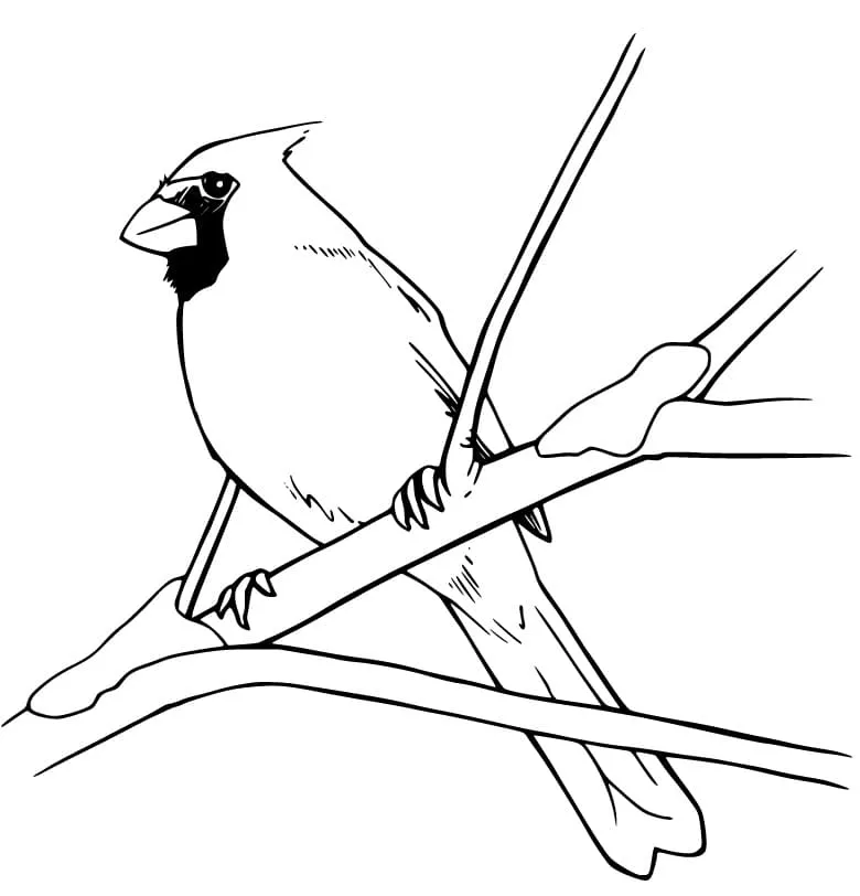 : Druckbar herunterladen Kardinalvogel auf einem Baum Malvorlage