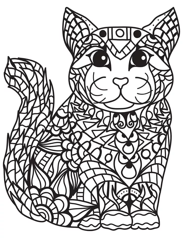 : Druckbar herunterladen Zentangle-Katze Malvorlage