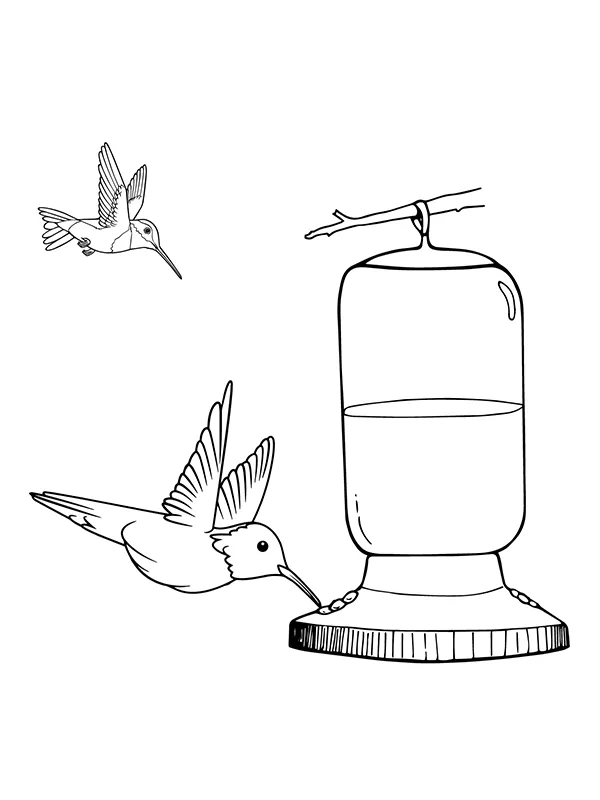: Druckbar herunterladen Kolibri und Futterhäuschen Malvorlage