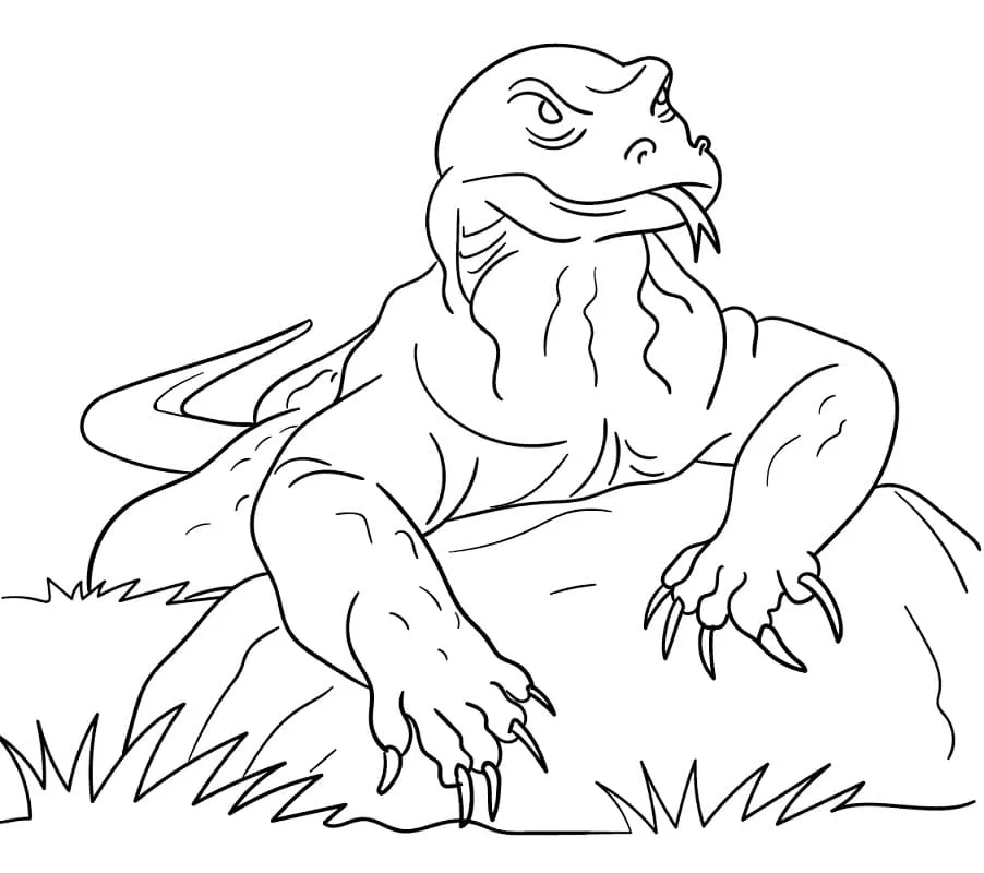 : Druckbar herunterladen Komodowaran auf Fels Malvorlage