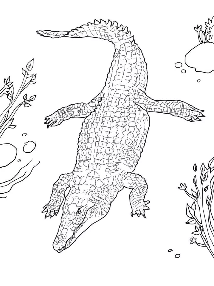 : Druckbar herunterladen Nilkrokodil zum Ausdrucken Malvorlage
