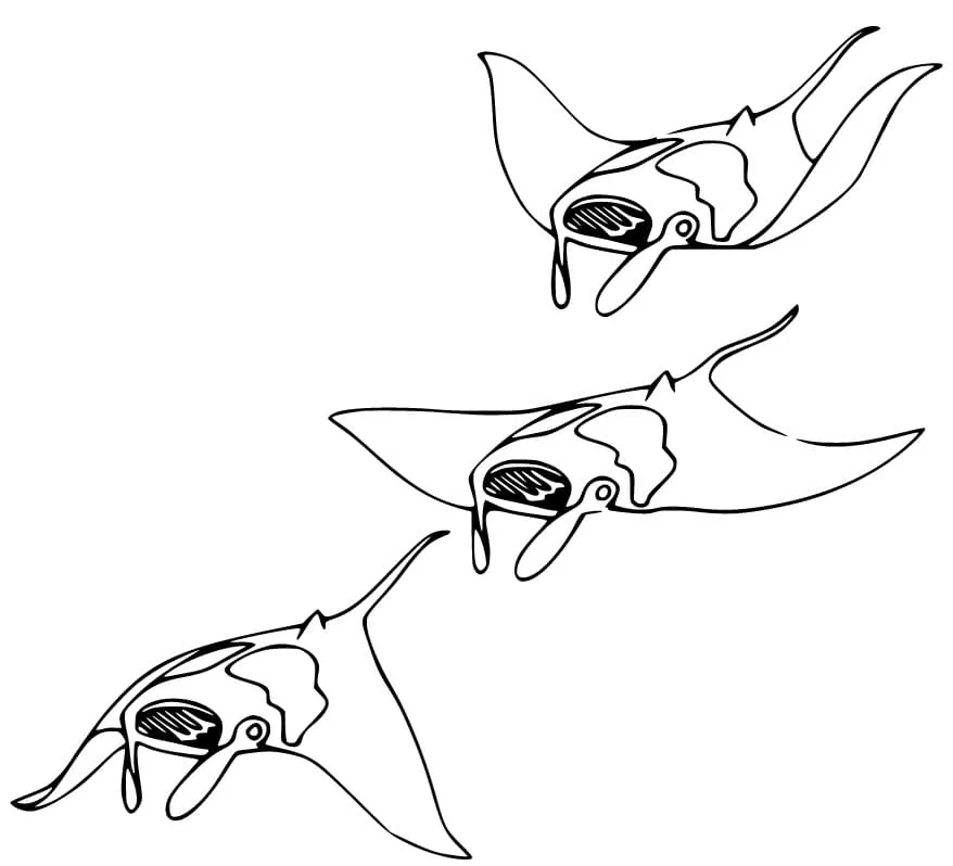 : Druckbar herunterladen Drei Mantarochen Malvorlage