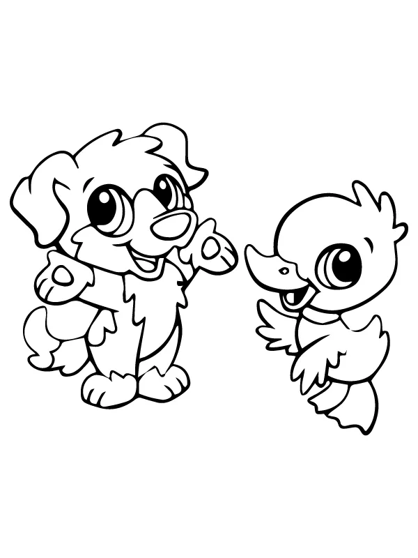 : Druckbar herunterladen Hund und Ente Malvorlage