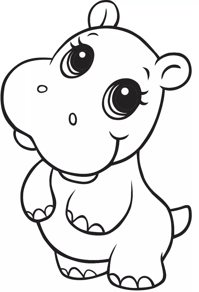 : Druckbar herunterladen Niedliches Nilpferd Malvorlage