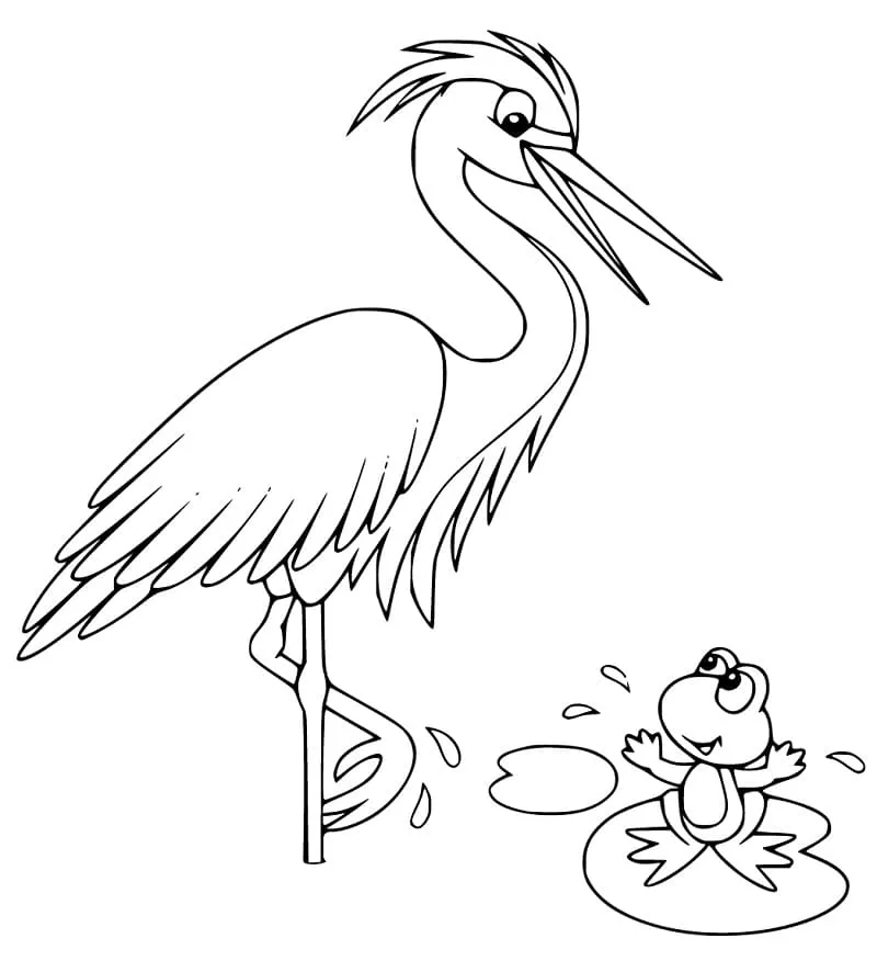 : Druckbar herunterladen Reiher und Frosch Malvorlage