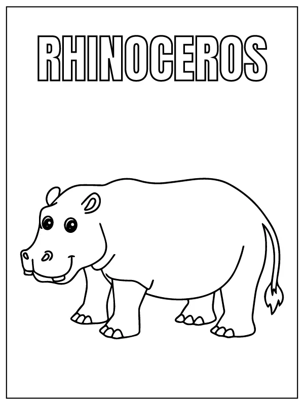 : Druckbar herunterladen Niedliches Nashorn Safari Tier Malvorlage