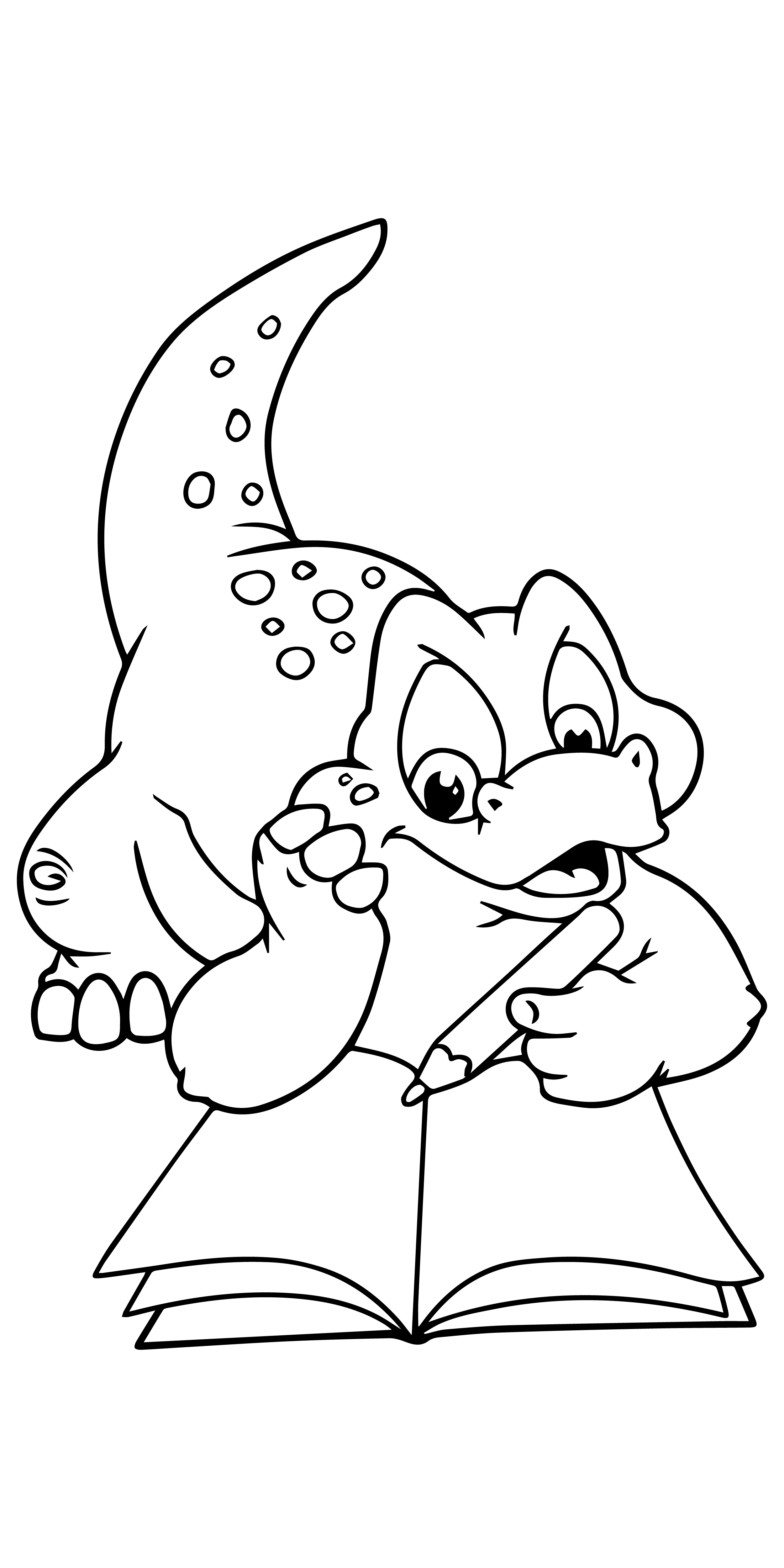: Druckbar herunterladen Dinosaur Reads Malvorlage