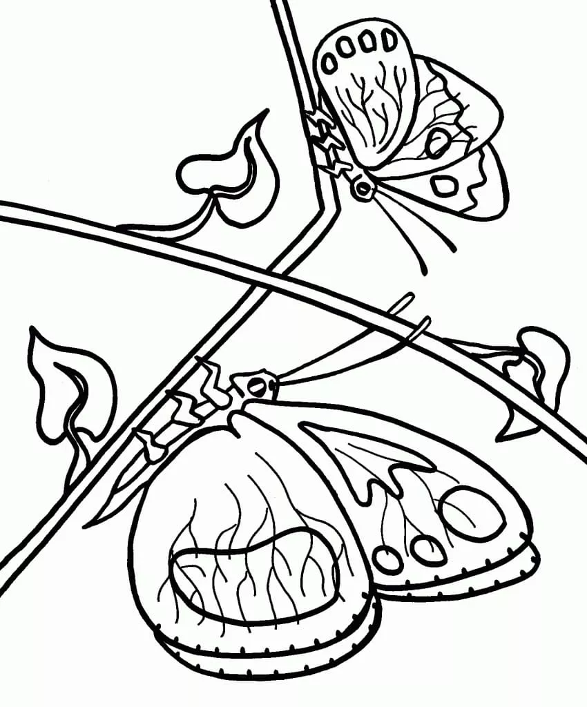 : Druckbar herunterladen Zwei Schmetterlinge Malvorlage