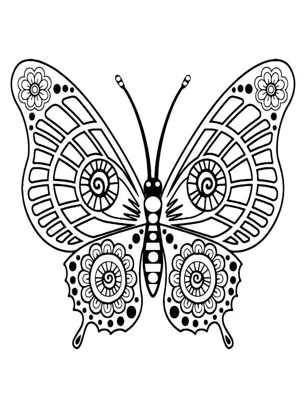 : Druckbar herunterladen Blume bedruckter Schmetterling Malvorlage