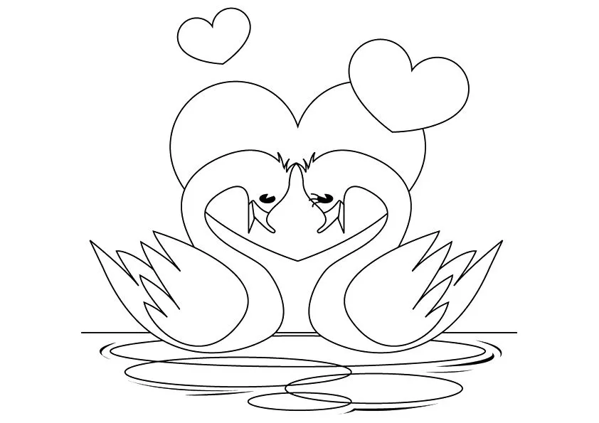 : Druckbar herunterladen Pärchen der Schwäne Malvorlage