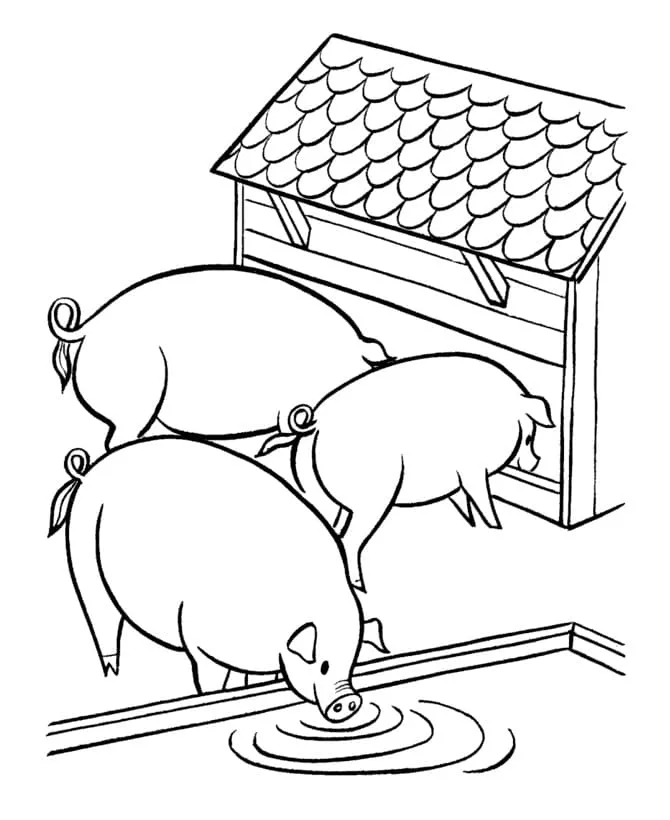 : Druckbar herunterladen Drei fette Schweine Malvorlage