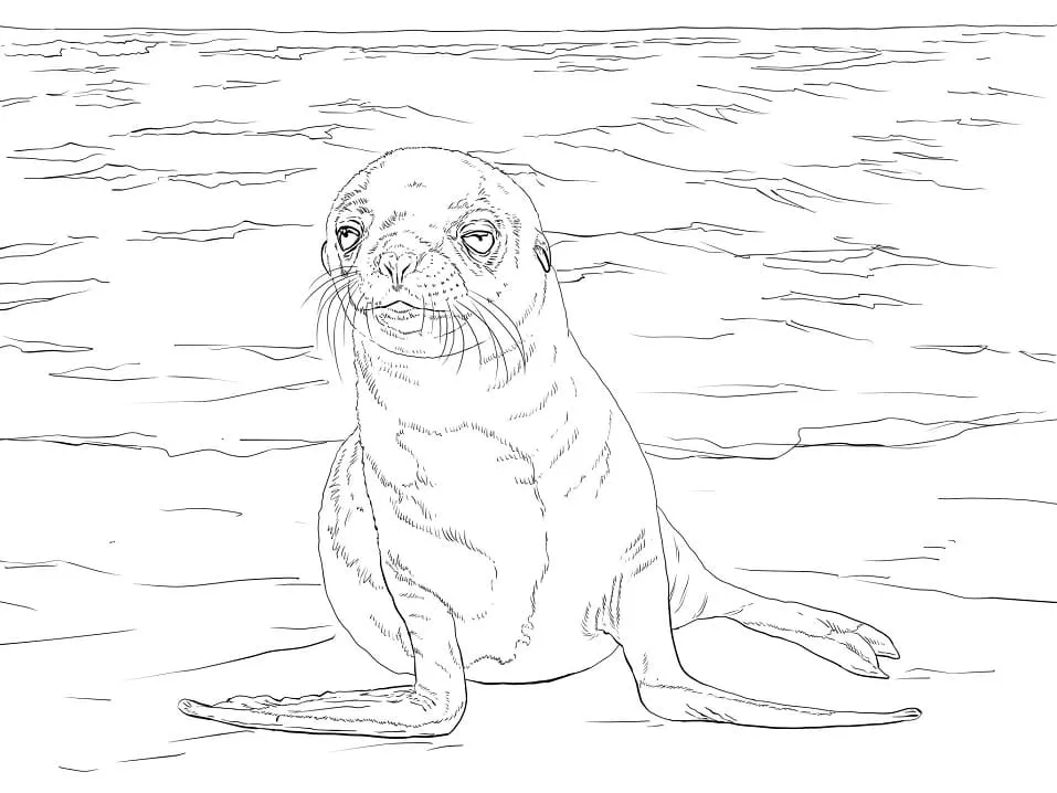 : Druckbar herunterladen Galapagos-Seelöwen-Welpe Malvorlage