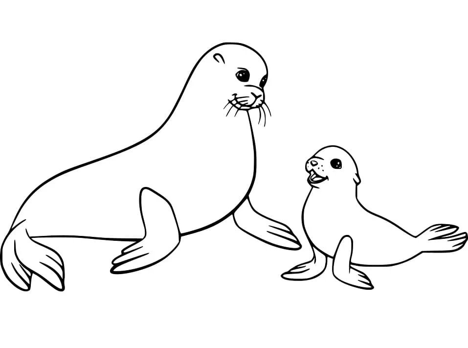 : Druckbar herunterladen Mutter und Baby Seelöwen Malvorlage