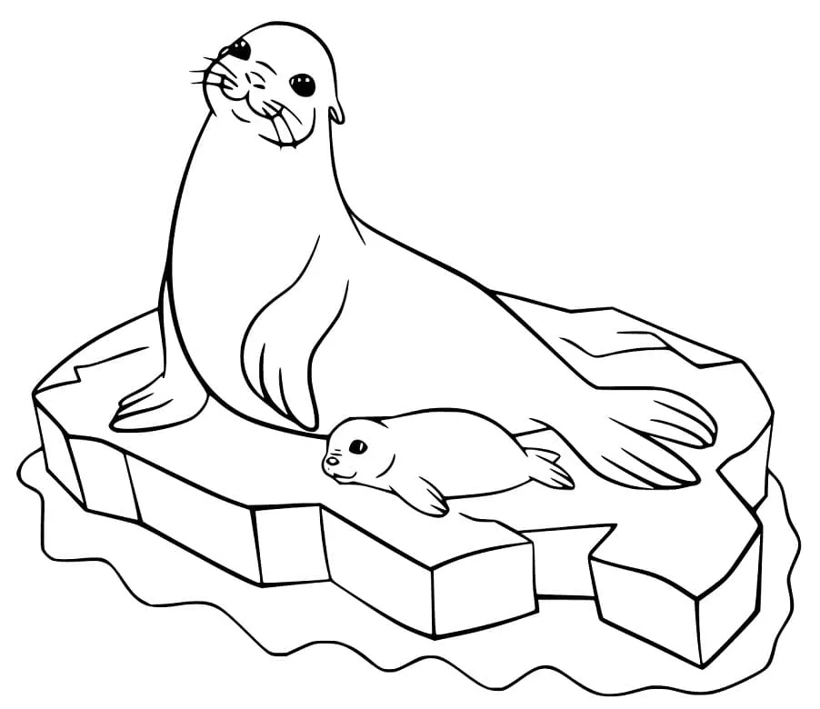 : Druckbar herunterladen Seelöwen auf dem Eis Malvorlage