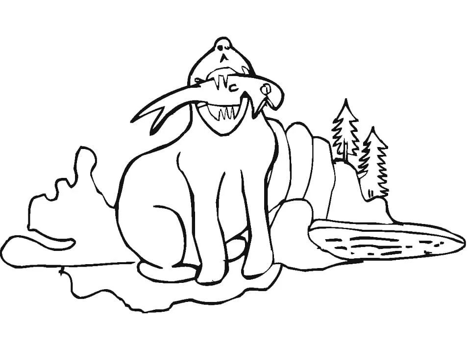 : Druckbar herunterladen Robbe beim Fischfang Malvorlage