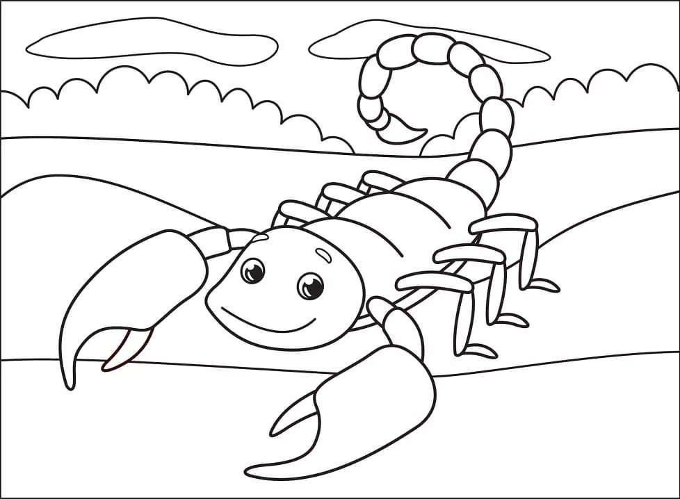 : Druckbar herunterladen Glücklicher Skorpion Malvorlage