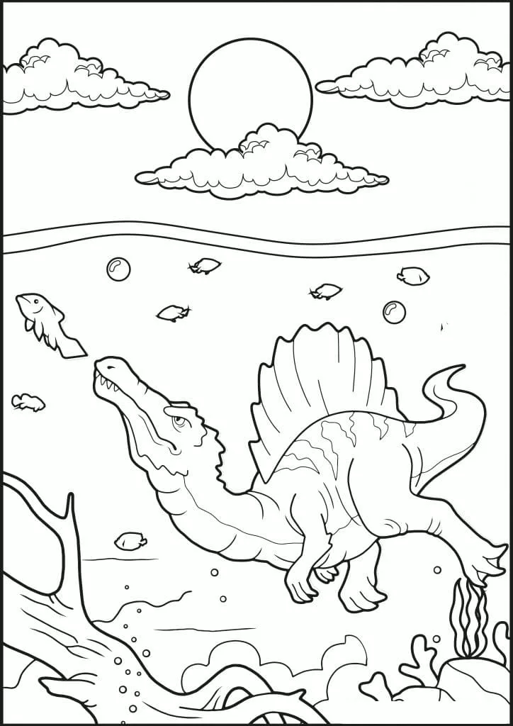 : Druckbar herunterladen Spinosaurus unter Wasser Malvorlage