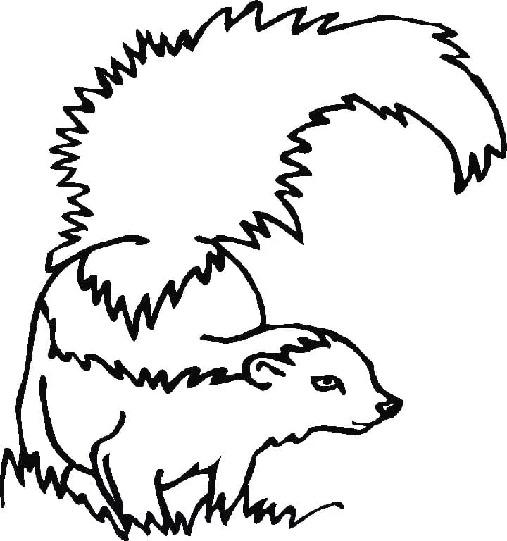 : Druckbar herunterladen Stinktier auf Gras Malvorlage