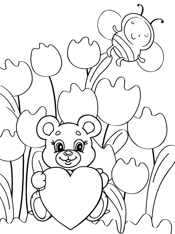 : Druckbar herunterladen Niedliches Teddytier Valentinstag Malvorlage