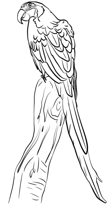 : Druckbar herunterladen Ara auf Zweig Malvorlage