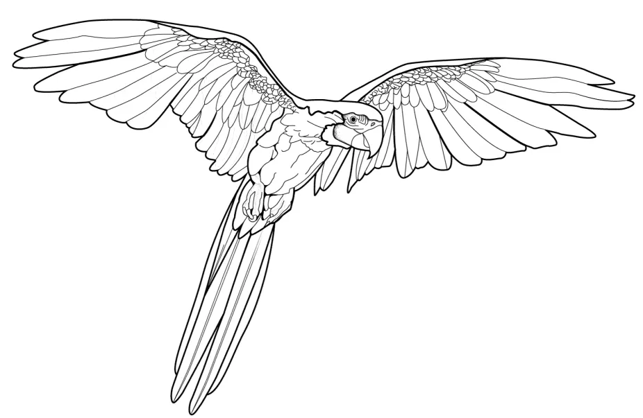 : Druckbar herunterladen Aras im Flug Malvorlage