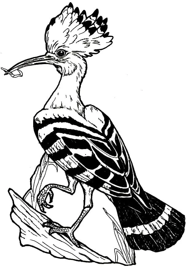 : Druckbar herunterladen Wiedehopf fressender Wurm Malvorlage