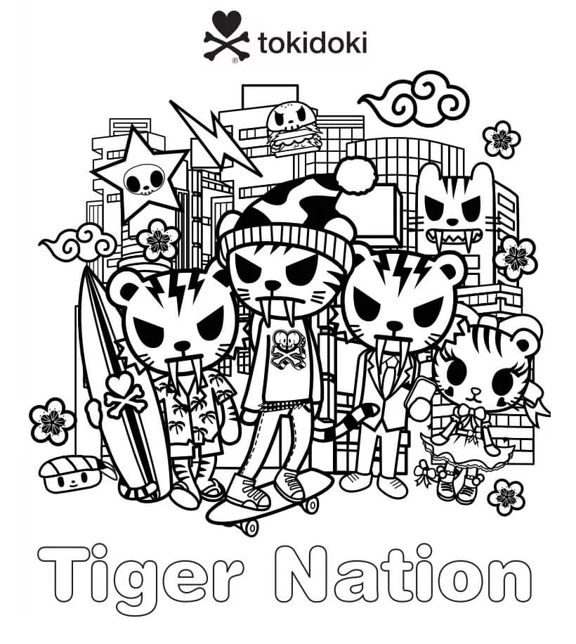 : Druckbar herunterladen Tiger Nation Crew Tokidoki Malvorlage