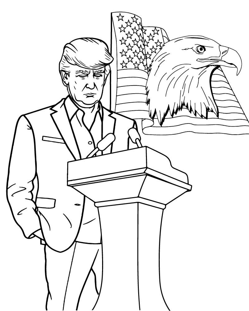 : Druckbar herunterladen Trump 2024 und die amerikanische Flagge Malvorlage