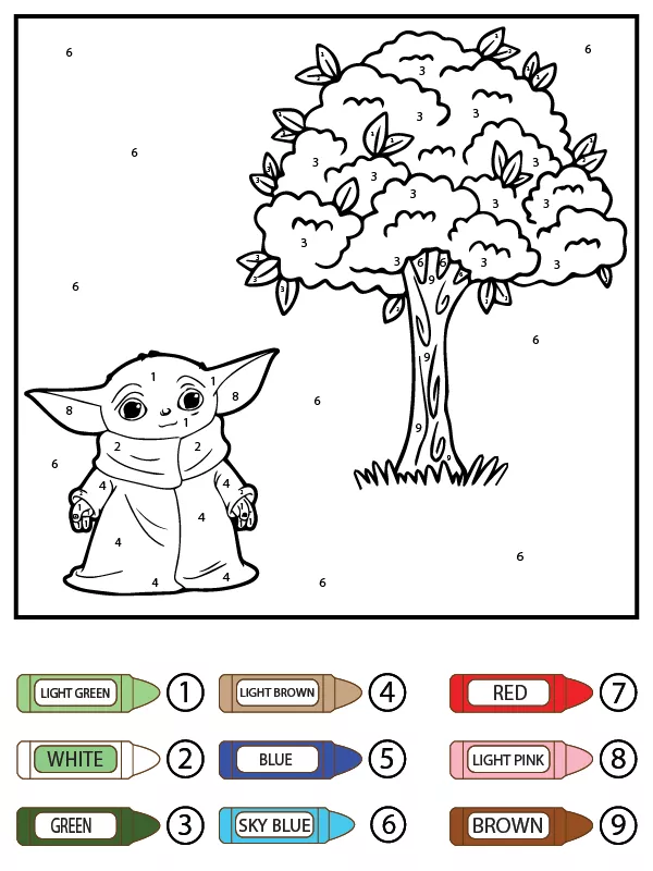 Erwachsenes Baby Yoda, Stern und Sonne Malen nach Zahlen