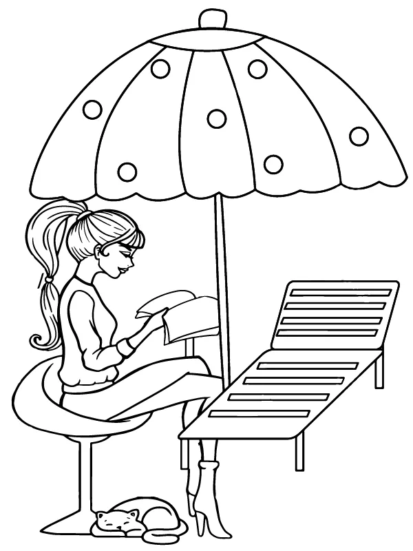 : Druckbar herunterladen Barbie am Strand Malvorlage