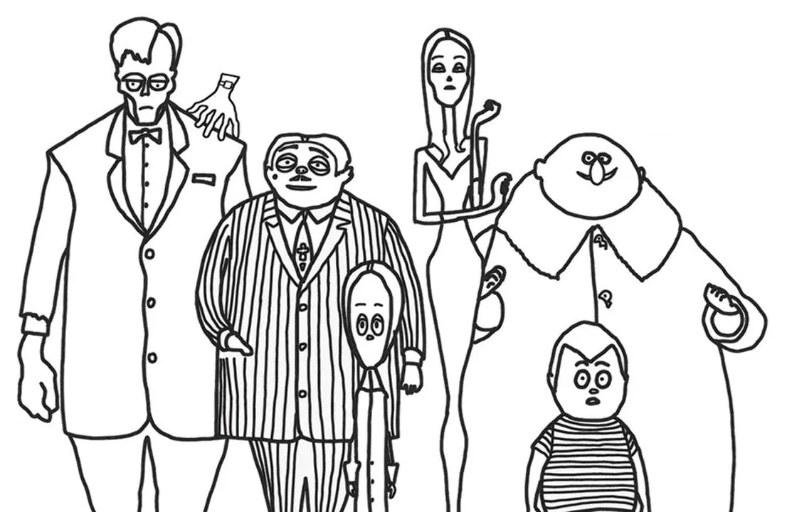 : Druckbar herunterladen Die Addams Family zum Drucken Malvorlage