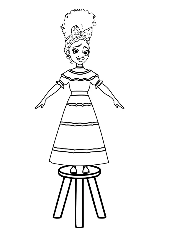 : Druckbar herunterladen Dolores Madrigal Stehend Auf Stuhl Malvorlage