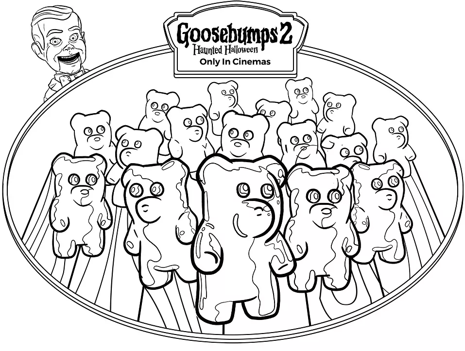 : Druckbar herunterladen Gummibärchen von Gänsehaut Malvorlage