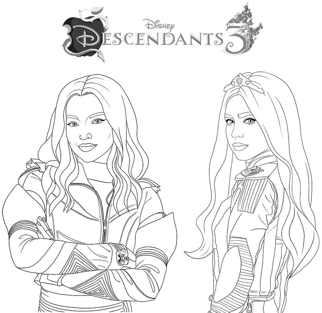 Klicken Sie auf die Schaltfläche Nachkommen 3 Mal und Evie Malvorlagen, um die Druckversion anzuzeigen oder online auszumalen (kompatibel mit iPad und Android-Tablets).