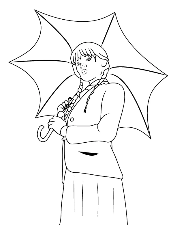 : Druckbar herunterladen Mittwoch mit Regenschirm in der Hand Malvorlage