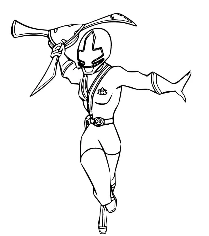 : Druckbar herunterladen Gelber Samurai-Waldläufer Malvorlage